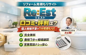 Re:Est(リエスト)の口コミ・評判は? 個人情報不要で1分見積もりの実力を徹底解説 結論:Re:Est(リエスト)は「営業電話を避けながら、 リフォーム…