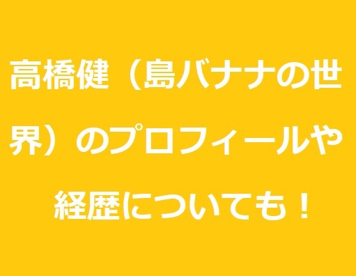島バナナの高橋健は誰?どんな人?正体、経歴プロフィール【マツコの知らない世界】 https://t.co/F5sHVWIvkT pic.twitter.com/RzWX3PwHfp
