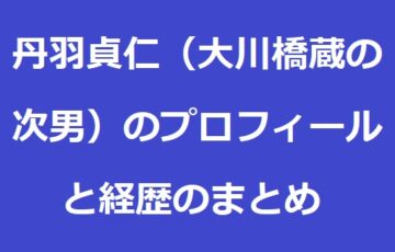 丹羽貞仁(大川橋蔵の次男)のプロフィールと経歴のまとめ